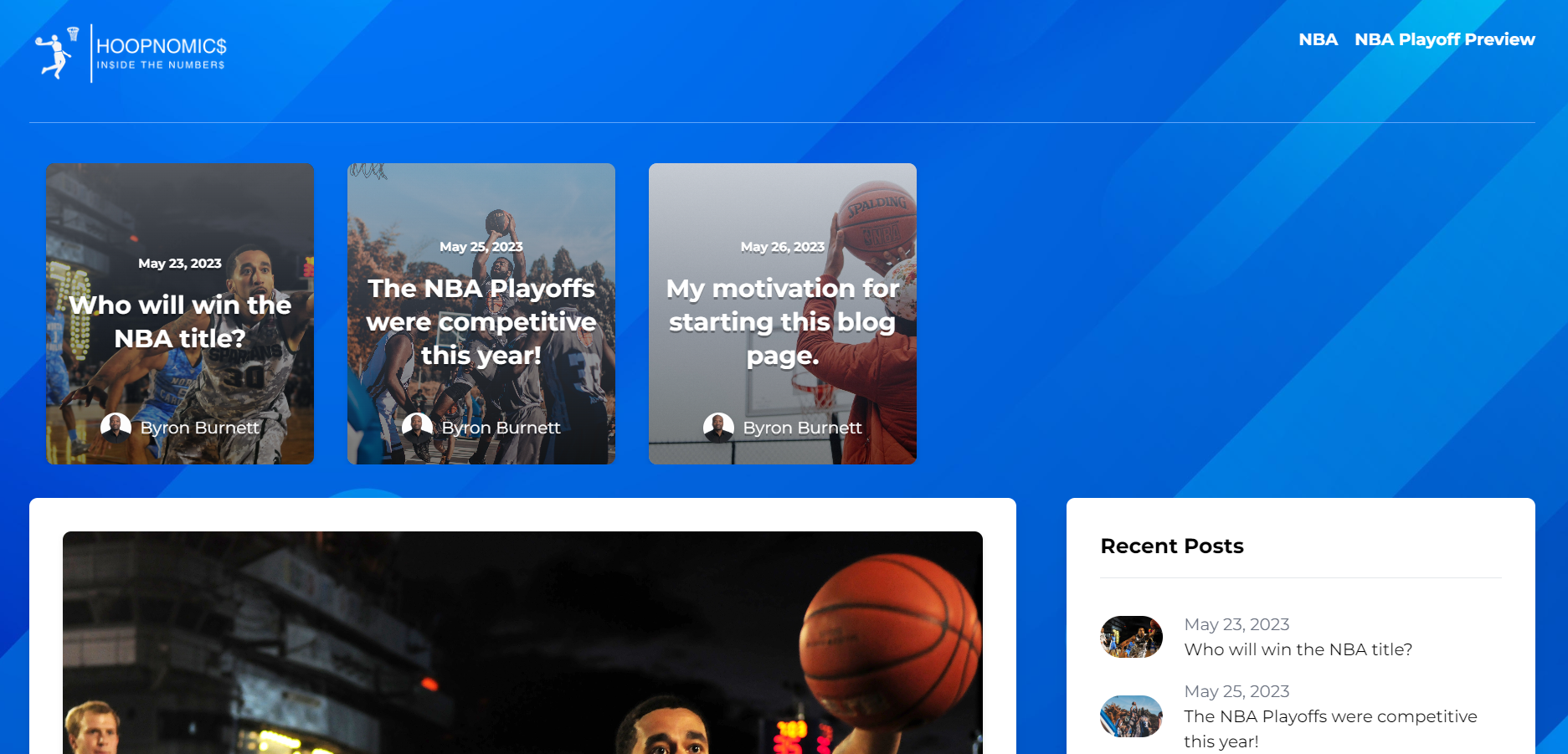 This is my personal blog page where I talk about my experiences as a professional basketball player. It is a headless CMS using Hygraph formely known as GraphCMS. Technologies used were Next.js, React, GraphQL and Tailwindcss to style each component